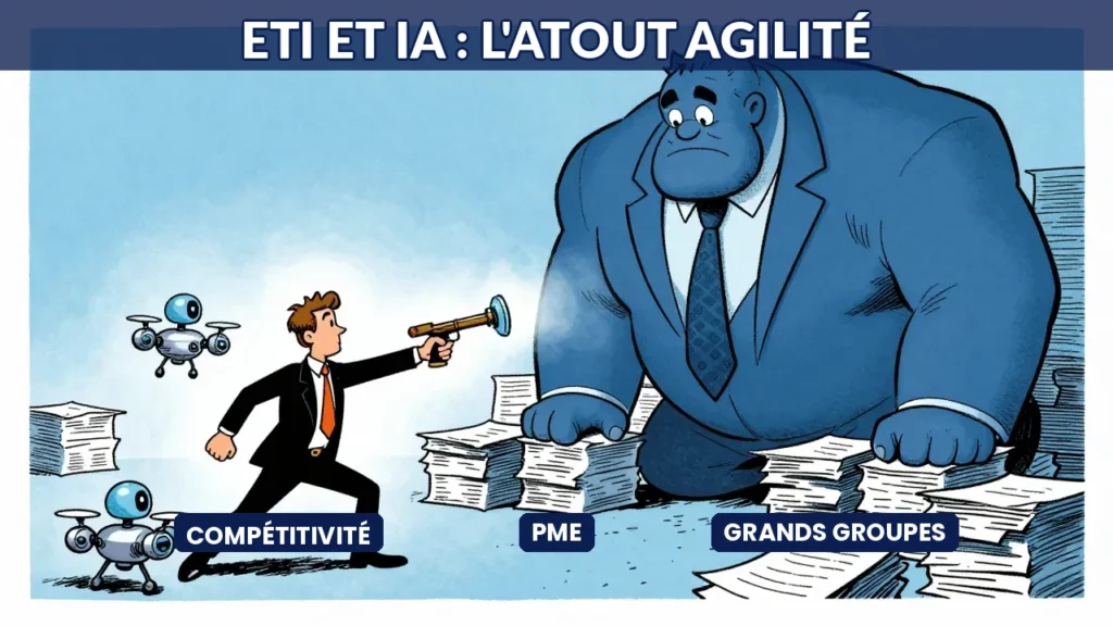 Les ETI françaises utilisent l’IA pour rivaliser avec les grands groupes grâce à leur agilité. Cas d’usage concrets, profils gagnants et stratégie d’adoption.